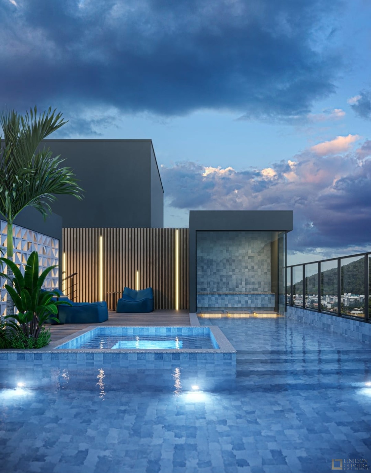 O HUB Tenório Studio de 37m² , sala integrada com a cozinha, banheiro social e churrasqueira e algumas funcionalidades externas às unidades, como lavanderia coletiva, coworking e loja de conveniência para atendimento dos moradores e usuários.
